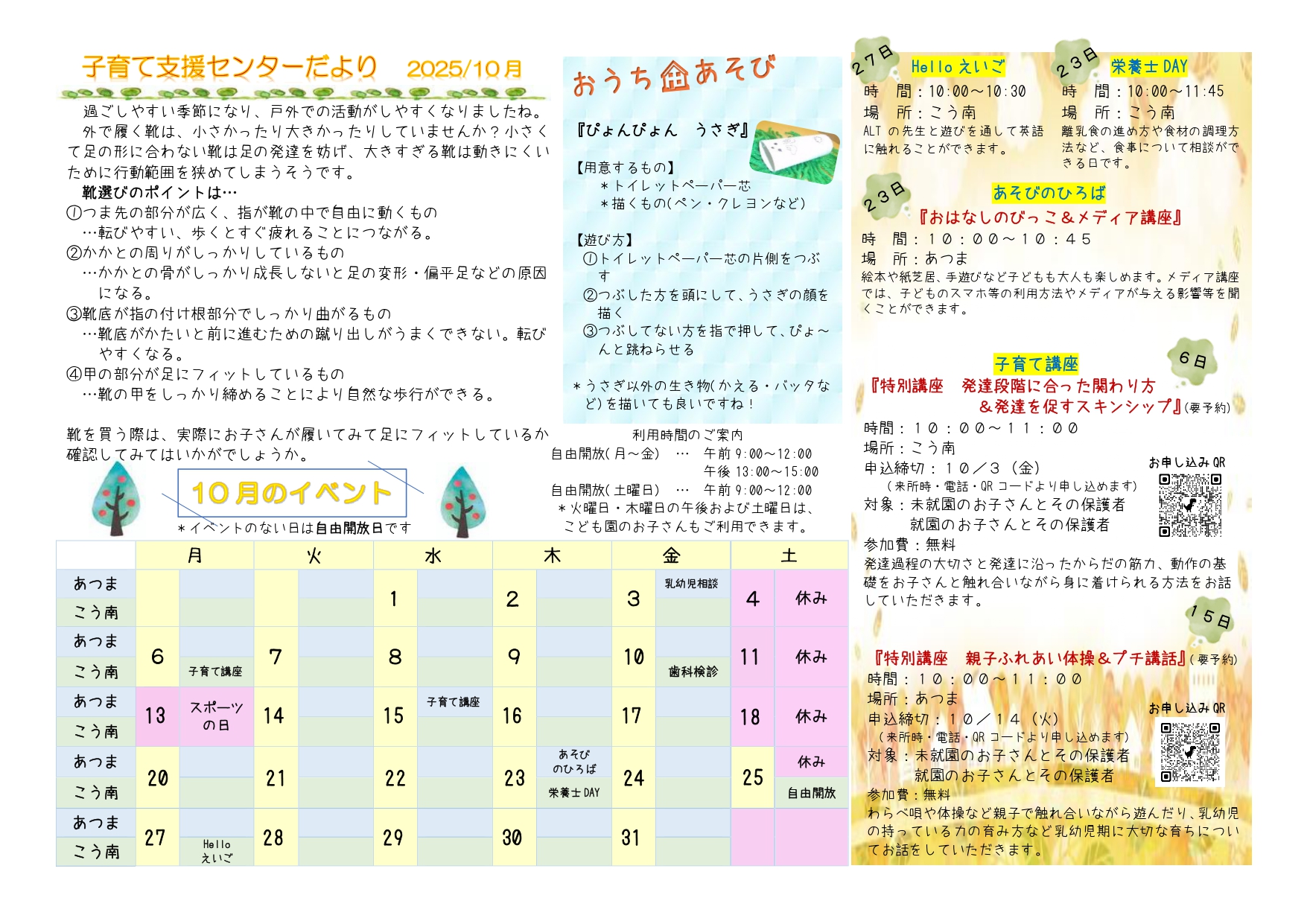 | 厚南子育て支援センター | 令和7年10月27日(月) |