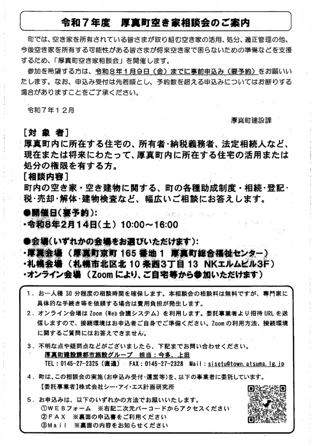 | 令和7年度厚真町空き家相談会のご案内 | ![]() |