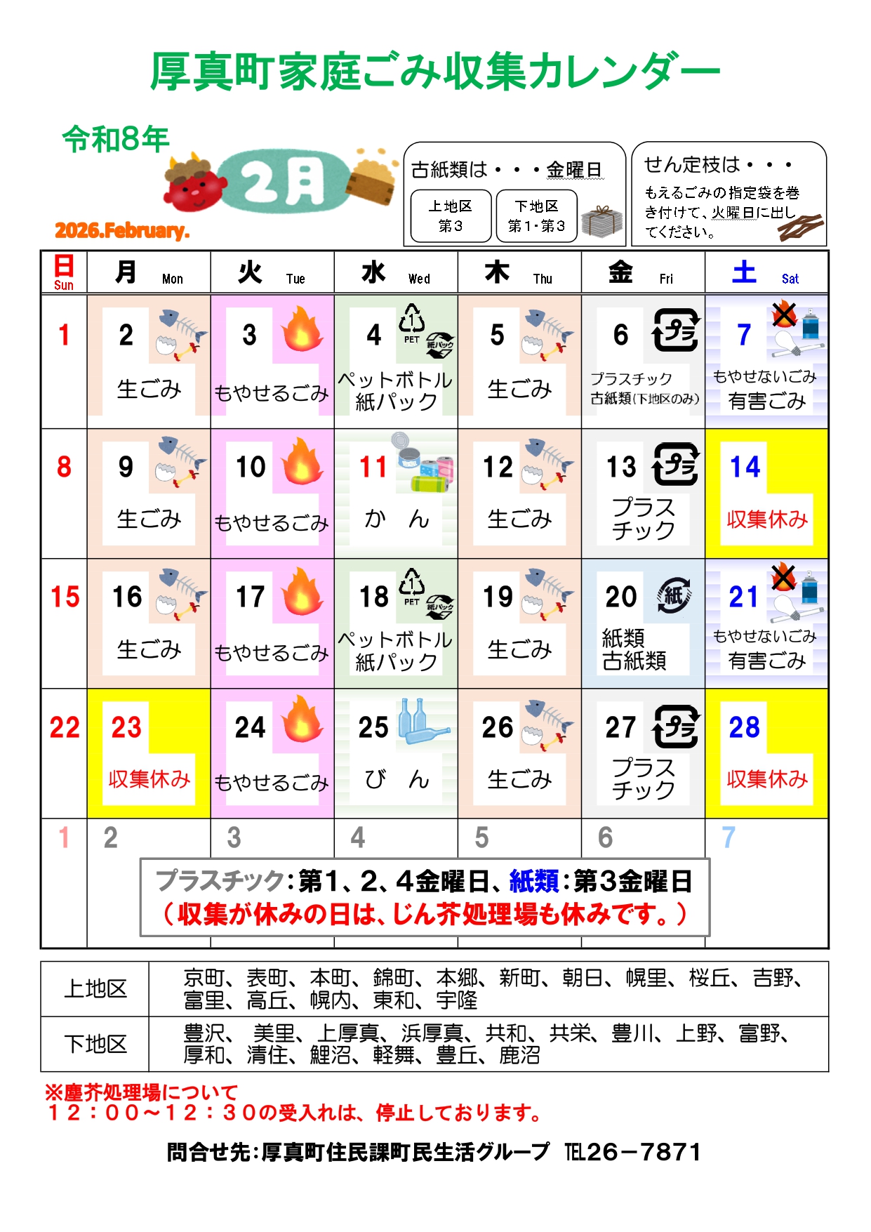 | 厚真町家庭ごみ 収集カレンダー |