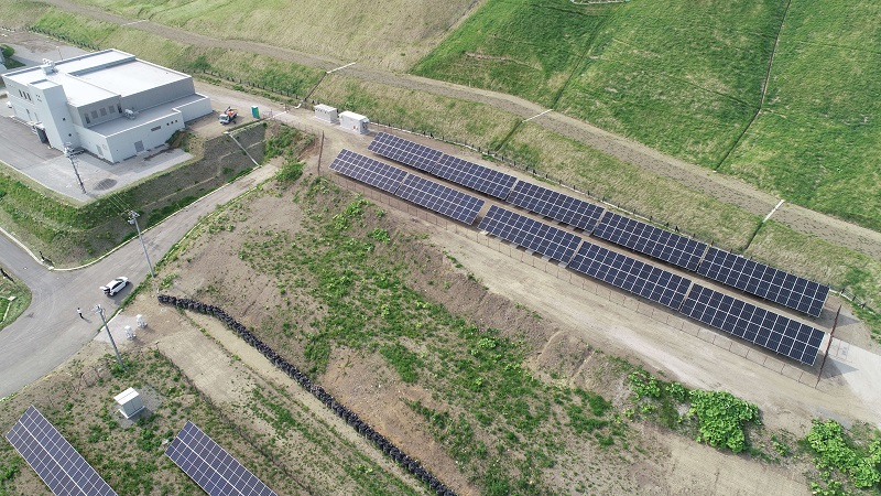 ※発電された再生可能エネルギーは、隣接する施設で自家消費され、余剰分は蓄電池に充電され、夜間電力の一部として使用されています。