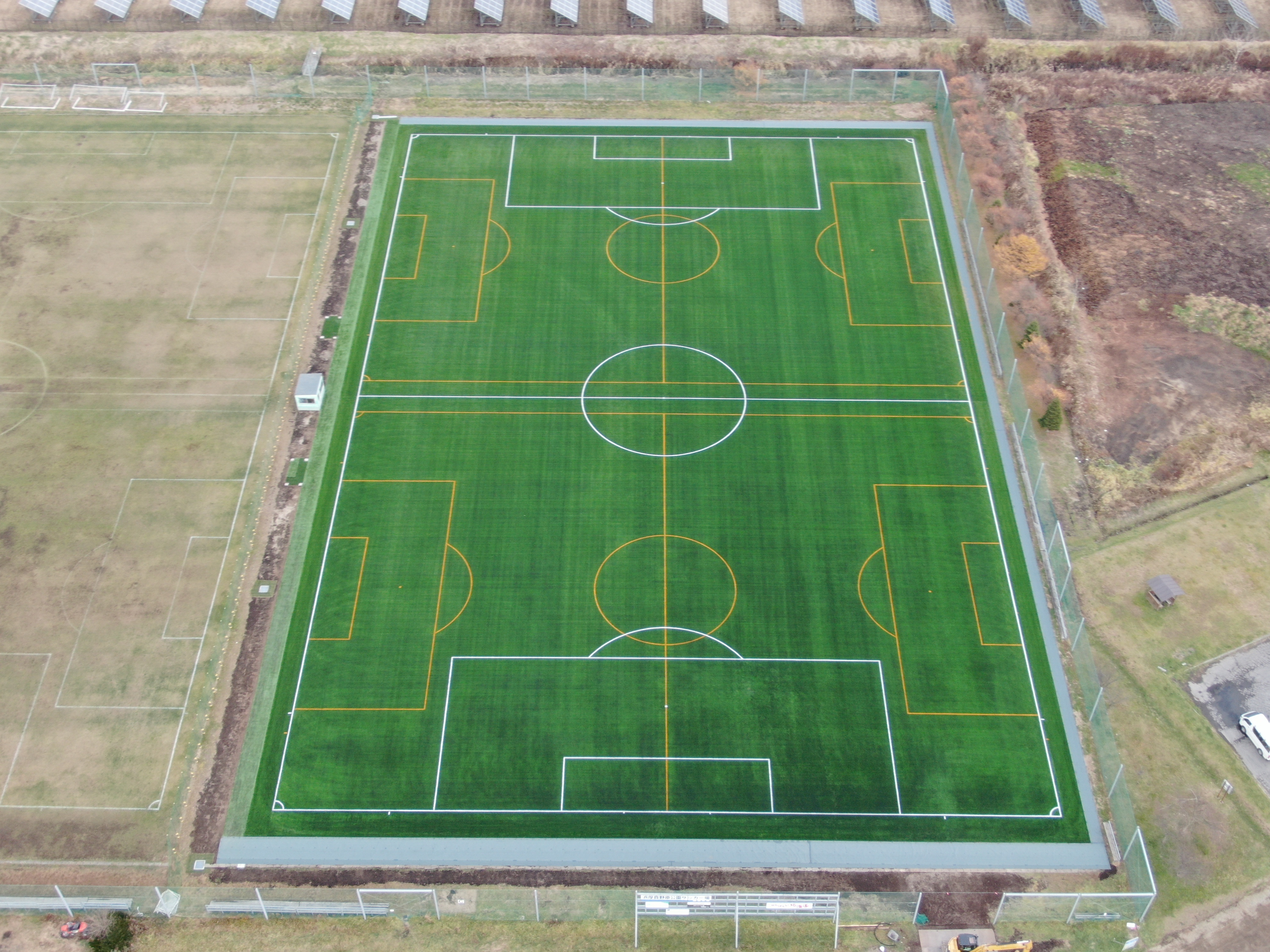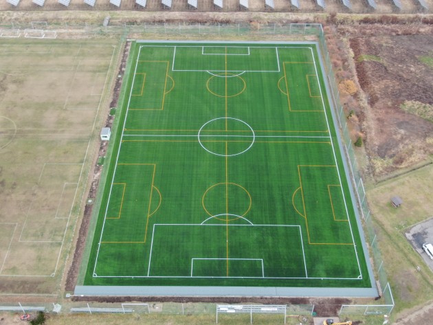 令和7年度に天然芝サッカー場3面のうち1面を人工芝サッカー場に改造する工事が行われました。