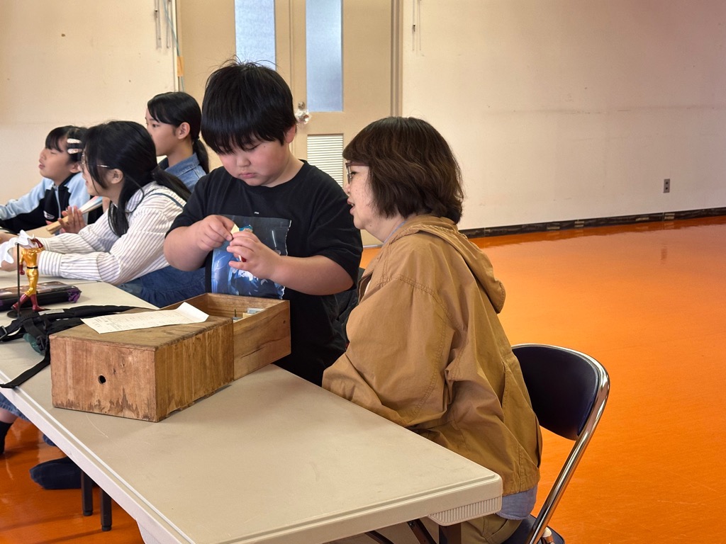 令和7年度1回目のディスカバリーカルチャーのテーマは昔の道具。子どもから大人まで13人の参加がありました。当日は、軽舞遺跡調査整理事務所から持ってきた、昔の便利な道具に触れ、いろんな意見が出され、多世代交流が活発に行われる場となりました。