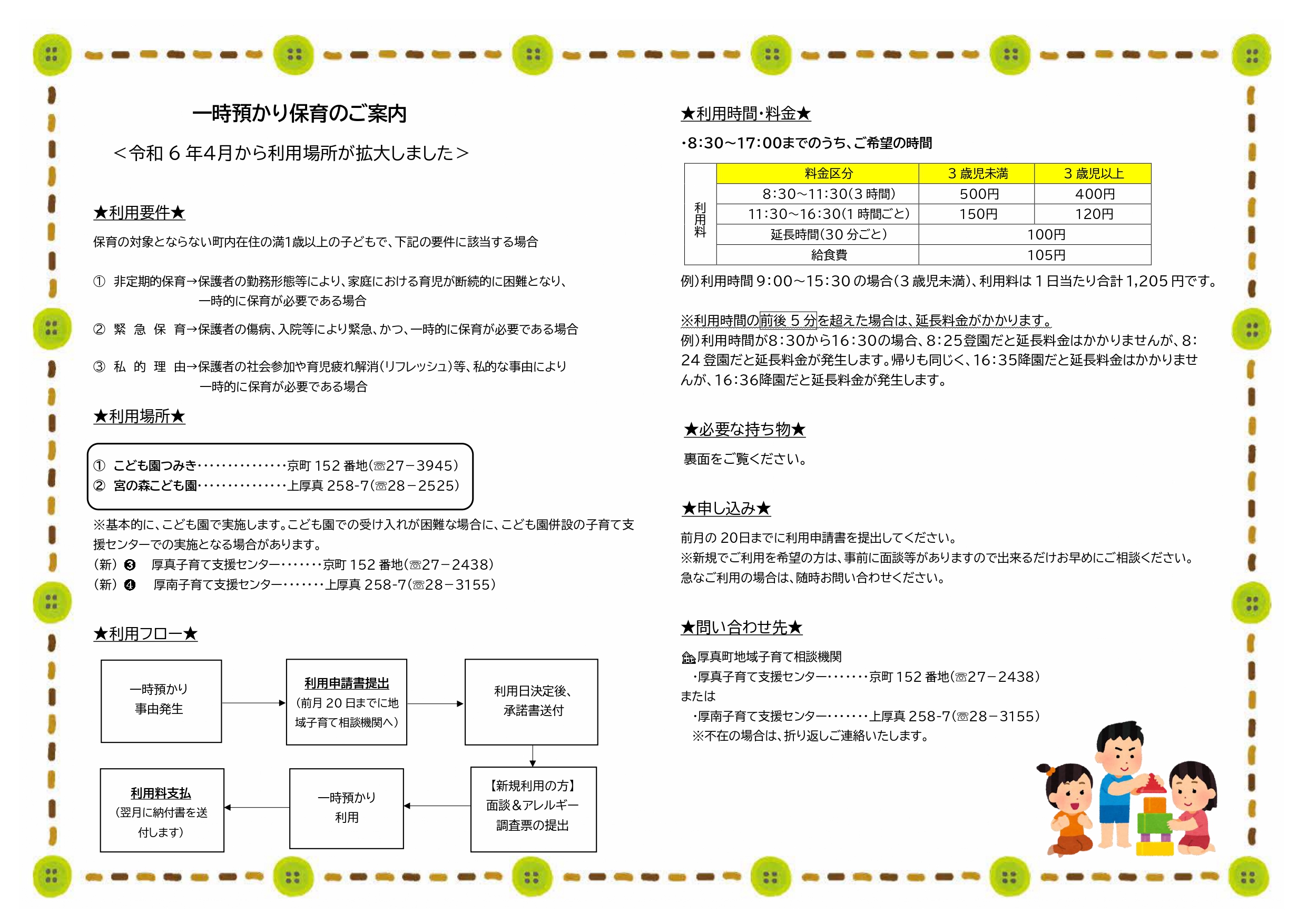※基本的に、こども園で実施します。こども園での受け入れが困難な場合に、こども園併設の子育て支援センターでの実施となる場合があります。