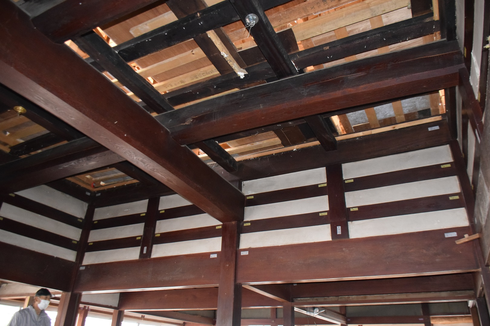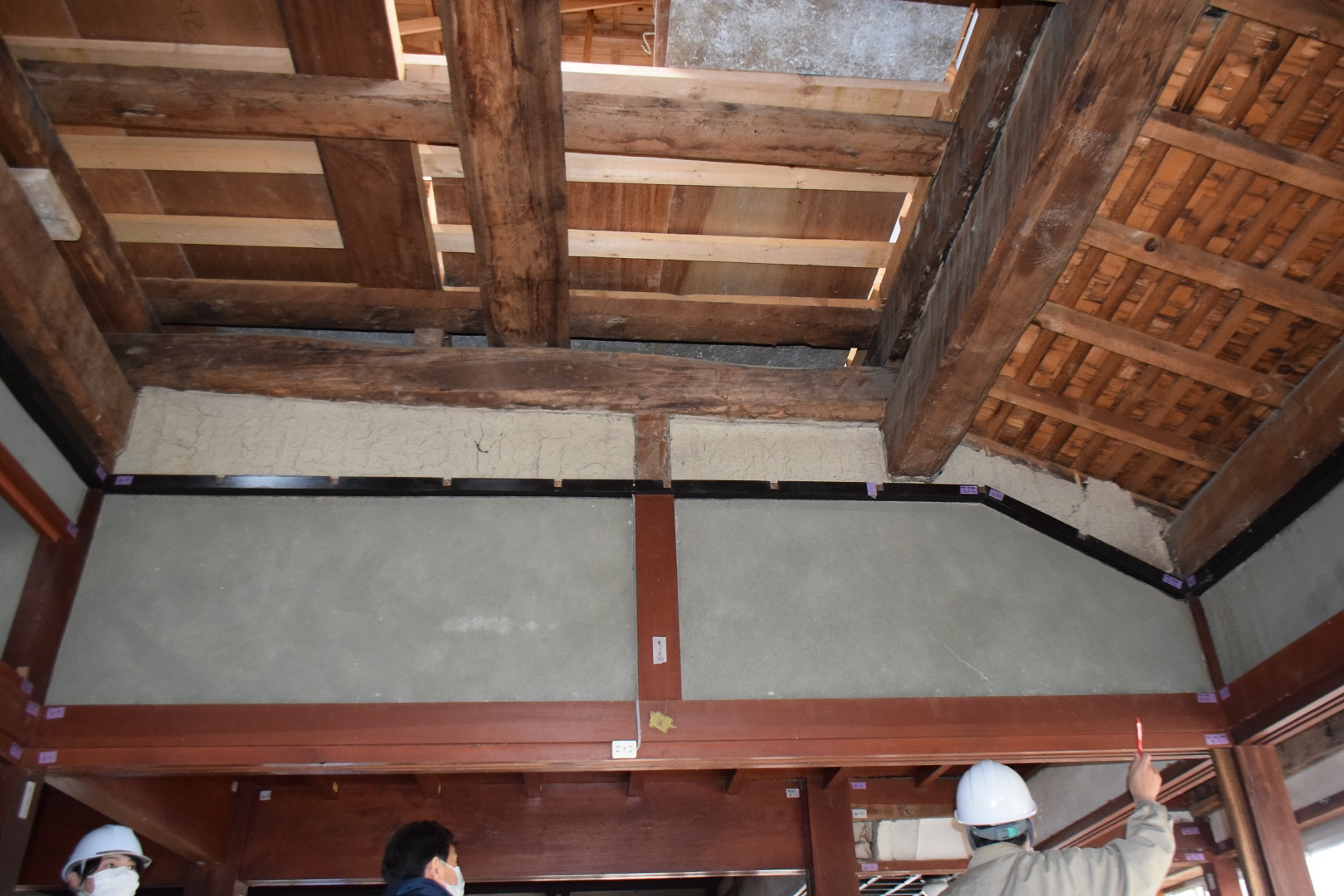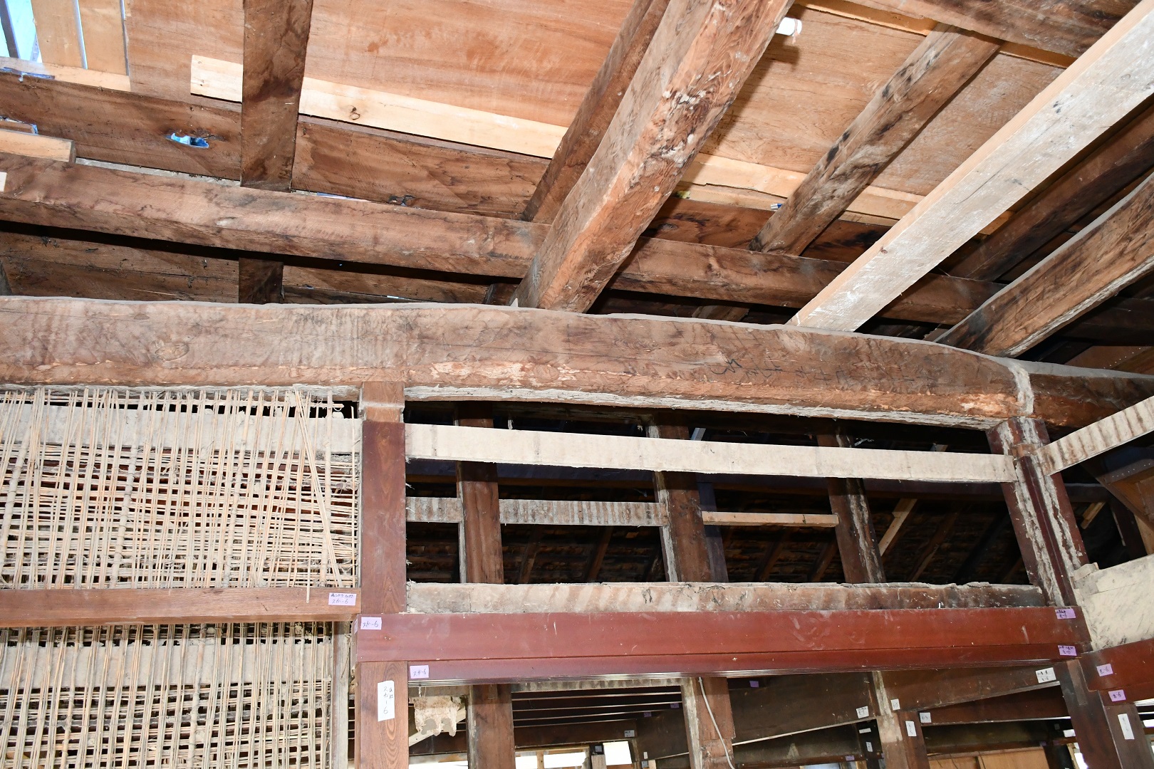 解体作業が進むなか、参加者は古民家の架構を目の当たりにしながら、担当者の説明に耳を傾け貴重な建造物を写真に収めました。