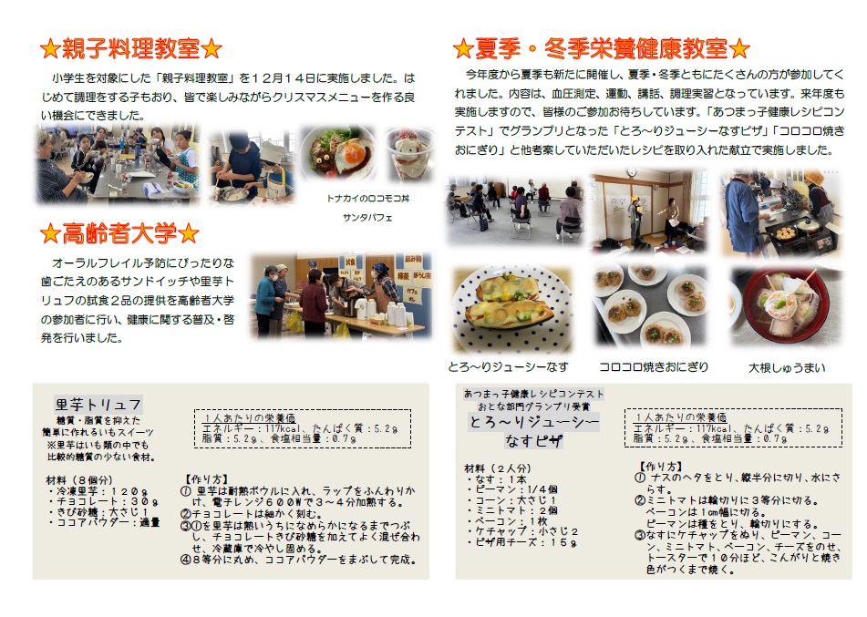 ・親子でクッキング ・冬季栄養健康教室 など