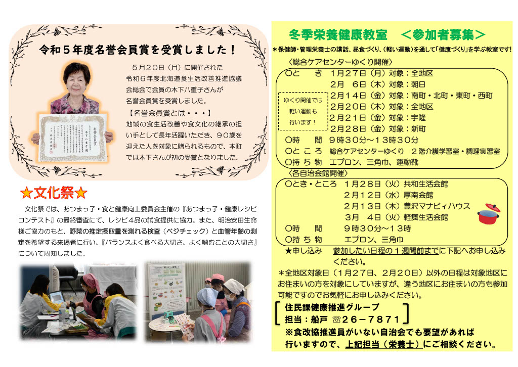 ・高齢者大学 ・町文化祭 ・食改協だよりの発行 など