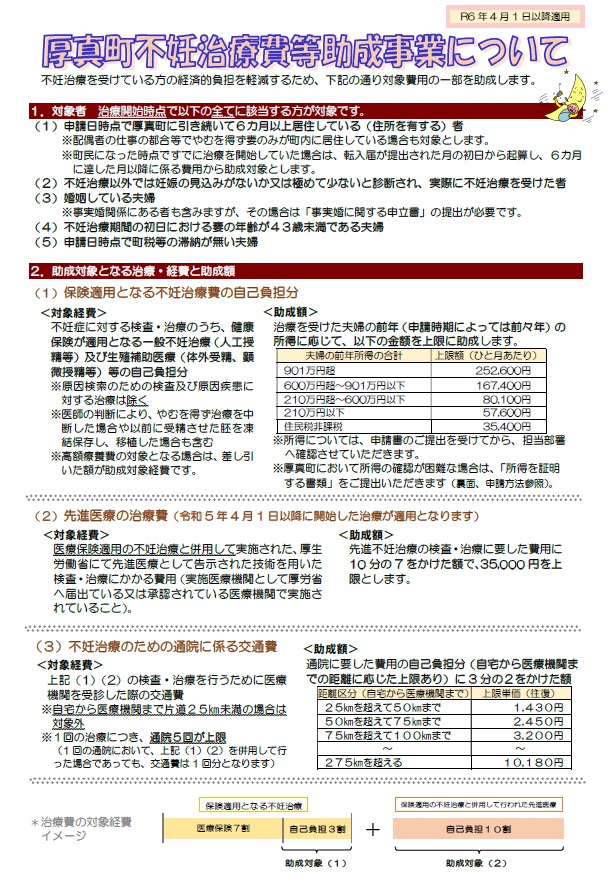 *令和4年度から:不妊治療が保険適用となったことを受けて、保険適用分の治療の自己負担分に対する助成を開始しています。