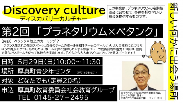 令和4年5月29日(日曜日)に開催したディスカバリーカルチャー第2回「プラネタリウム×ペタンク」には、14人のご参加をいただきました。