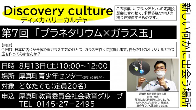 生涯学習だより(令和4年8月26日発行)でも、「ディスカバリーカルチャー 第7回 プラネタリウム×ガラス玉」の様子を紹介しています。