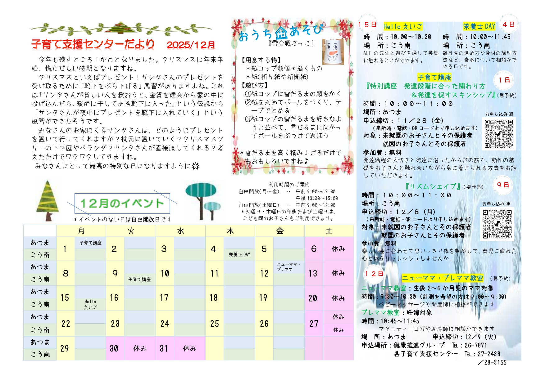 ・厚南子育て支援センター 0145-28-3155