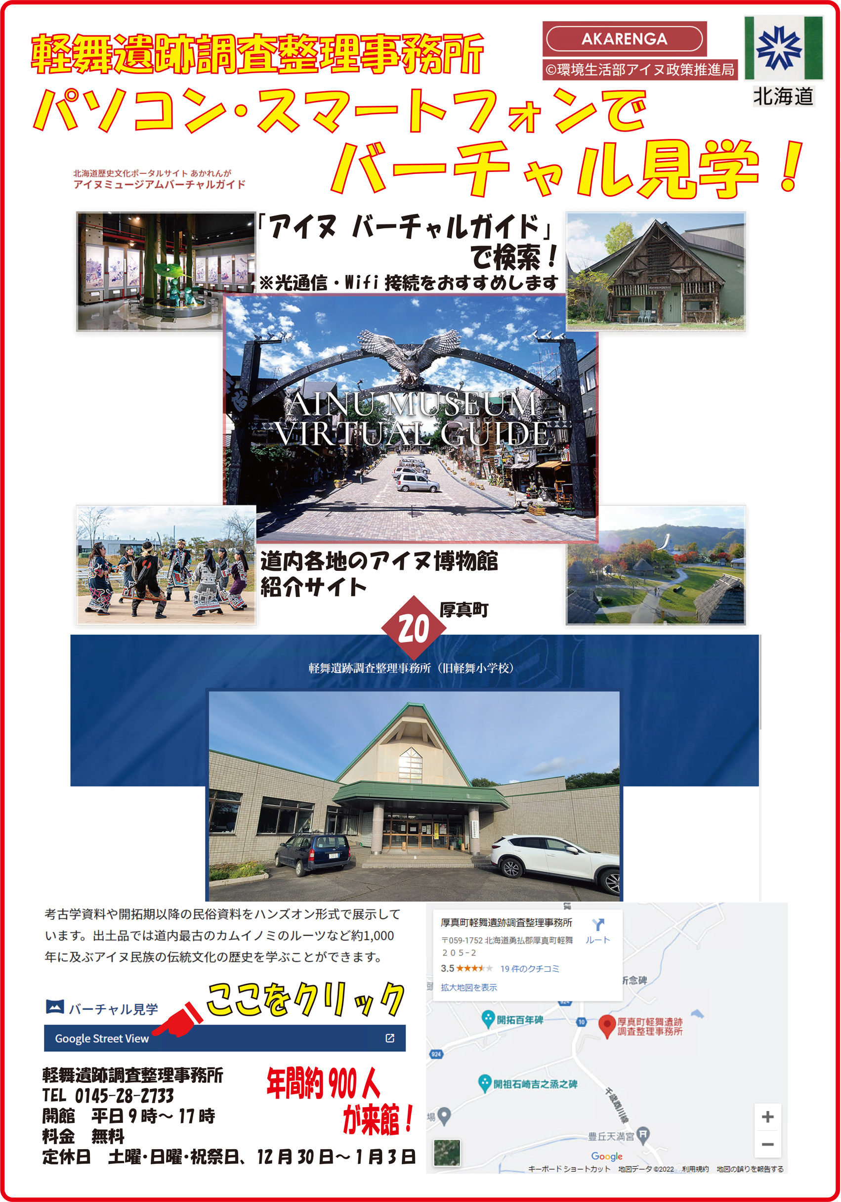 アイヌミュージアムバーチャルガイド(軽舞遺跡調査整理事務所)北海道歴史文化ポータルサイト 「あかれんが」へ<外部リンク>