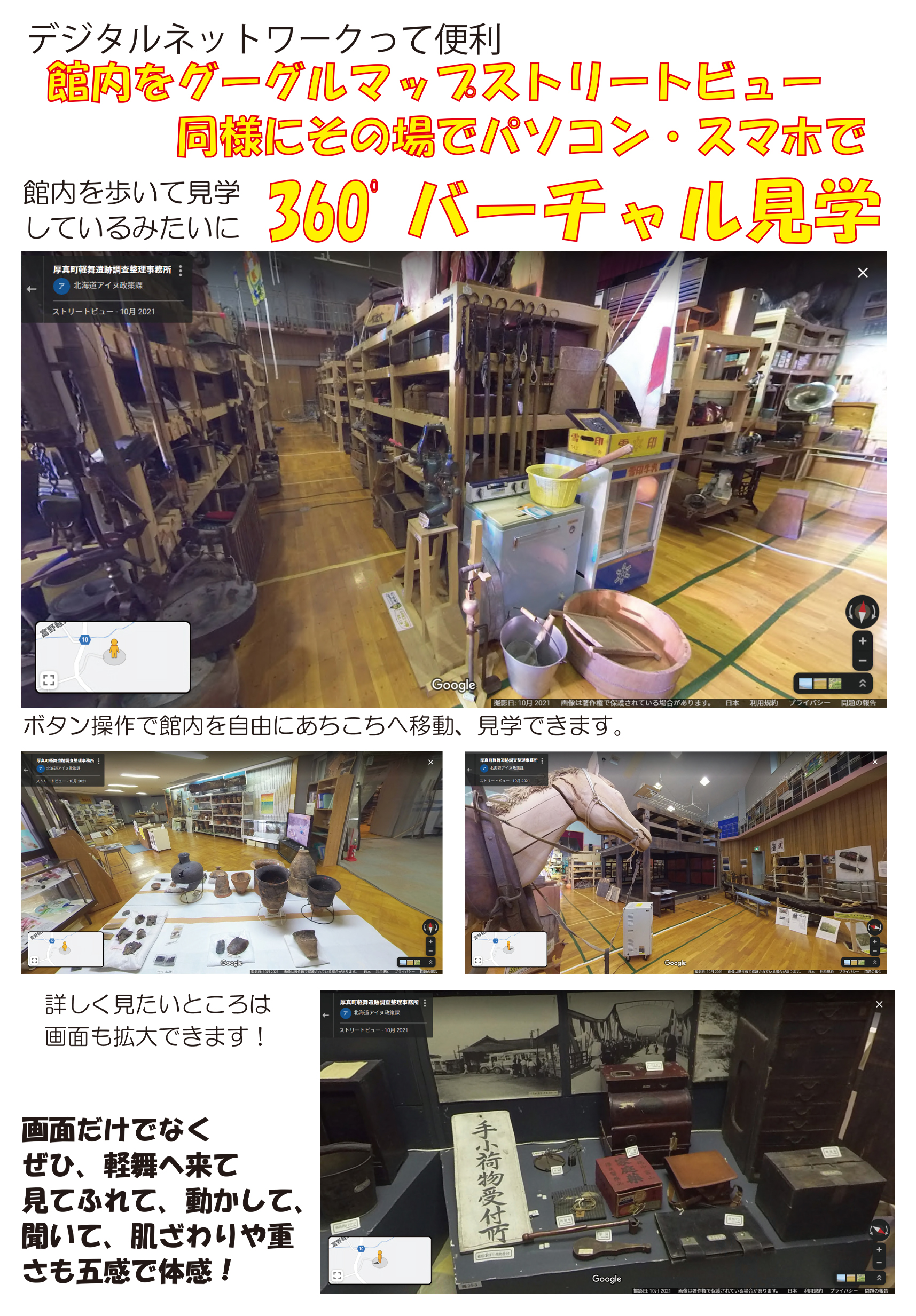 「アイヌミュージアム・バーチャルガイド」は、施設の360度映像を見ながらまるで実際に見学しているような体験ができます。